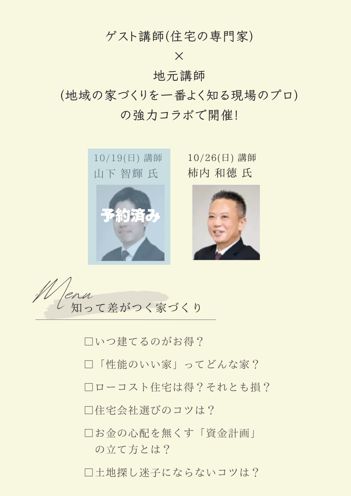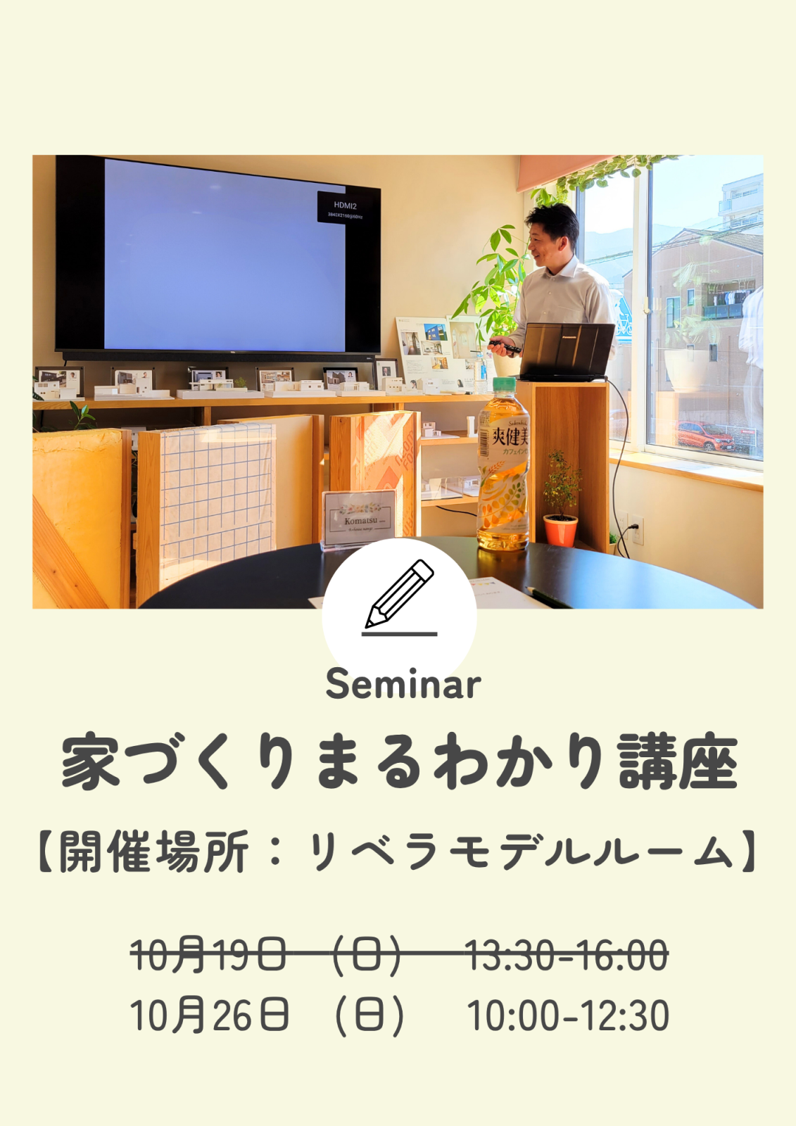 10月「家づくりまるわかり講座」開催のお知らせ*